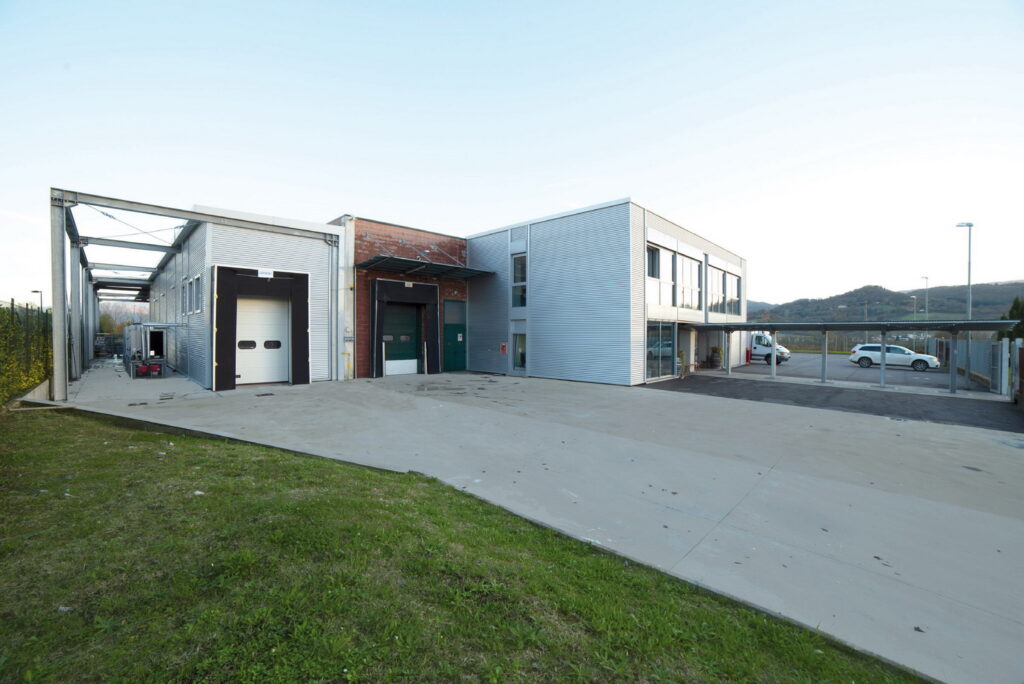 L’oggetto dell’appalto riguardava l’ampliamento e l’adeguamento del Centro Carni Mugello, stabilimento di macellazione, sezionamento e produzione di preparazioni di carni di proprietà della COMUNITÀ MONTANA MUGELLO. I lavori hanno riguardato principalmente: il fronte principale, con l’avanzamento del volume già aggettante rispetto ai piani di carico esistenti. È stato ampliato, al piano terra, il punto vendita esistente e realizzato un nuovo ufficio, un nuovo locale deposito; al piano primo ampliato invece l’ufficio “open space” già esistente; il fronte laterale, dove sono state realizzate due celle frigorifere (tunnel di raffreddamento) e un locale per la spedizione delle carni. La struttura portante dell’ampliamento a ovest (uffici-negozio) è di tipo prefabbricato in cemento armato precompresso, con plinti collegati da fondazione continua con pilastri e travi in c.a. e muratura di tamponamento da 30 cm di spessore. Il rivestimento è a vista in lamiera ondulata di alluminio, dello stesso colore della struttura portante di tettoie e pensiline come per i fronti laterali a contatto con i piani di carico della parte produttiva; in listelli di legno tenero e finiture in alluminio Ral 9006, per il fronte principale. I serramenti esterni hanno profili in legno/alluminio a taglio termico. La struttura portante dell’ampliamento delle celle è invece in acciaio zincato con tamponamento in pannelli sandwich di tipo frigorifero e il rivestimento a vista in lamiera ondulata di alluminio.