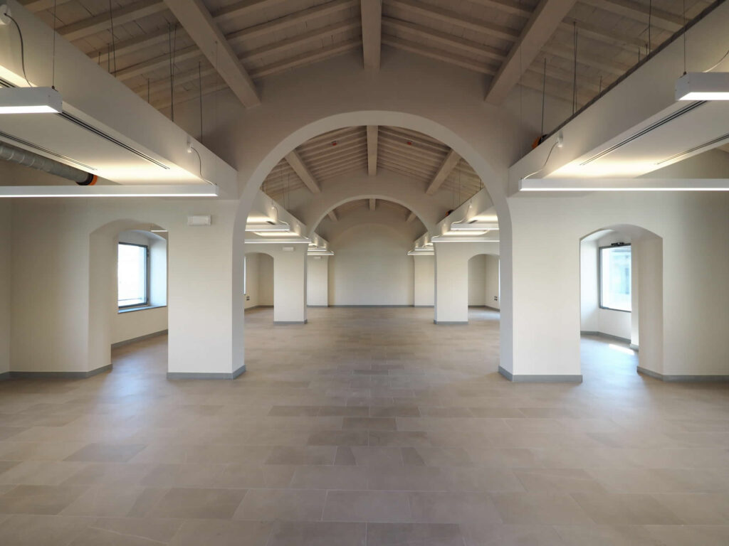 Il restauro che Costruzioni Spagnoli si appresta a completare con successo rappresenta la riqualificazione funzionale più significativa – per dimensioni e valore storico e architettonico del complesso – realizzata in tempi recenti nel territorio fiorentino. Un intervento lungimirante e ambizioso, commissionato dalla Fondazione Cassa di Risparmio di Firenze, con progetto dell’Arch. Annalisa Baracchi e dell’Ing. Giuliano Galzigni. Siamo sulla riva sinistra dell’Arno, in pieno centro storico a Firenze. Il complesso risale alla fine del Seicento, quando fu realizzato da Cosimo III dei Medici per conservare il grano in tempo di carestia. Nell’Ottocento divenne Panificio militare e, per molto tempo, fu Caserma militare dove i fiorentini si recavano per la visita di leva. Un compendio immobiliare di rilevante interesse storico, architettonico e paesaggistico, sottoposto a vincolo da parte MIBACT e situato in area urbanistica di “Ambito del nucleo storico” (zona A). La ristrutturazione completa ha permesso la sua trasformazione in uno spazio multifunzionale: una piccola città nella città, articolata in: 4 sale conferenze/auditorium, 12 meeting room, postazioni di lavoro in coworking per oltre 200 professionisti, incubatore di scuola di formazione e spazi aperti al pubblico come social bar, ristorante ed enoteca. L’ex Caserma Cavalli, oggi Granaio dell’Abbondanza, è polo dell’innovazione digitale realizzato da Fondazione CR Firenze con il supporto tecnico di Nana Bianca, società di sviluppo start up. Quattro edifici per un unico grande complesso, integrato e multifunzionale. Il compendio immobiliare è articolato in quattro corpi di fabbrica: un edificio principale su piazza del Cestello, uno su viale Soderini, la sede degli antichi granai e l’edificio su via del Tiratoio. Costruzioni Spagnoli ha portato a compimento i lavori strutturali su tutti gli edifici nel 2020, consentendo l’apertura degli spazi che oggi ospitano le attività del Granaio dell’Abbondanza nei primi tre edifici. Entro la fine di quest’anno saranno ultimate le finiture dell’immobile che si affaccia su via del Tiratoio, destinato presto ad accogliere attività formative. Un tunnel in vetro collega Soderini a Piaggione, in aderenza a Cestello. La realizzazione all’interno della corte di un volume interrato in cemento armato – destinato ad accogliere vani tecnici, servizi igienici, parcheggio biciclette – ha rappresentato la prova del nove che ha dimostrato la capacità d’intervento di Costruzioni Spagnoli. Svuotare interamente una corte su cui insistono quattro edifici secolari e costruirvi un nuovo volume in aderenza alle strutture esistenti ha significato saper operare in una situazione altamente critica sia dal punto di vista della sicurezza che della logistica e dell’operatività. L’edificio dell’antico granaio è stato valorizzato da un tetto realizzato con capriate interamente in acciaio, assemblate e zincate direttamente sul posto e dalla pavimentazione in cristallo che consente di ammirare i contenitori del grano restaurati. Sulla copertura è stato aperto un grande lucernario che dà origine a un vano luce che attraversa e illumina fino al primo piano dell’immobile e che accoglie al suo interno un ascensore in cristallo. Soluzione funzionale ed esteticamente davvero suggestiva che ha comunque richiesto consolidamenti strutturali con catene e inghisaggi. Con questo intervento di risanamento conservativo e di riqualificazione, Costruzioni Spagnoli si conferma general contractor solido e affidabile, capace di gestire la complessità di interventi sensibili e dall’alto valore aggiunto.
