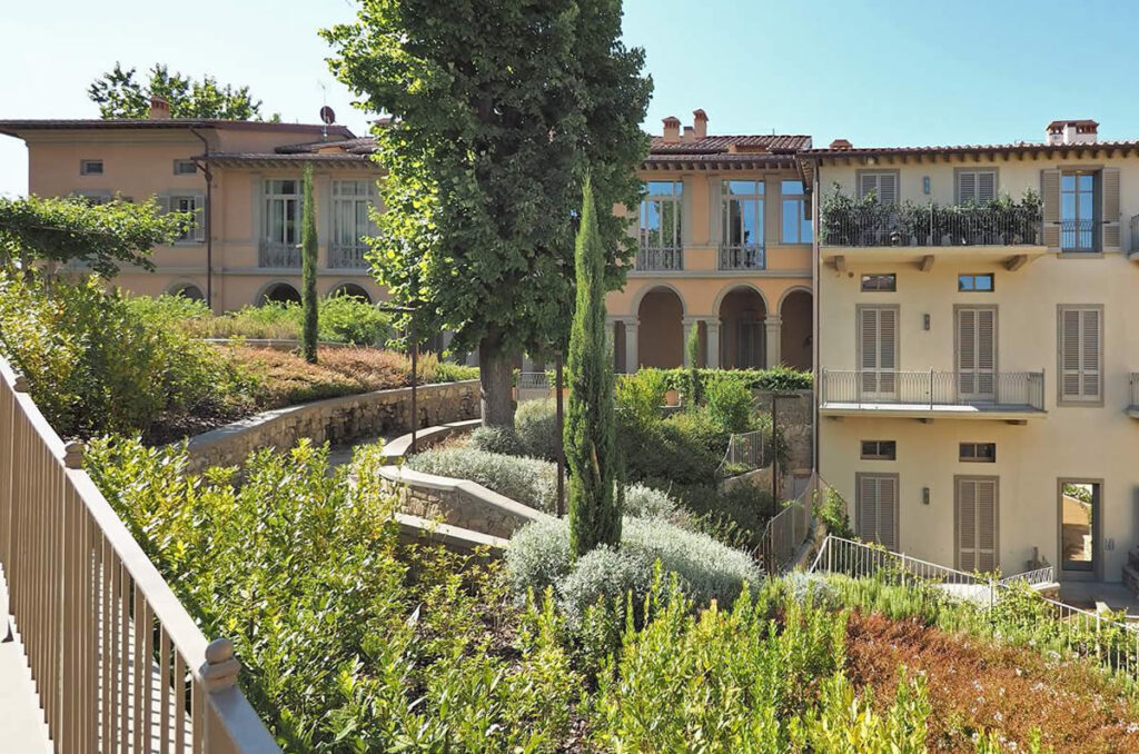 Un autentico intervento di riqualificazione urbana, sintesi esemplare tra identità storica e le migliori soluzioni tecnologiche in tema di risparmio energetico, innovazione e materiali. Il grande parco interno ad uso esclusivo dei residenti completa un quadro progettato per offrire il massimo in qualità dell’abitare. Il complesso immobiliare è parte di una costruzione che risale al Quattrocento realizzata dai nobili fiorentini Baroni Ricasoli, poi arricchita verso la metà dell’Ottocento dallo splendido edificio porticato in stile neorinascimentale che si affaccia sul parco interno. Fino al 2006, l’intero complesso era adibito a convento della Congregazione delle figlie del Sacro Cuore Teresa Verzieri. Dopo il ritiro delle religiose, l’intera struttura è rimasta per anni senza una nuova destinazione d’uso, fino a versare in stato in degrado. La realizzazione delle nuove eco residenze ha richiesto un intenso impegno progettuale, una serrata e puntuale organizzazione ed esecuzione dei lavori che ha interessato non solo gli edifici e il parco interno ad uso condominiale – oggi riportato al suo antico splendore – ma anche alcuni spazi pubblici adiacenti all’area. Tutto il lavoro che ha portato alla valorizzazione della storia del luogo, del suo valore artistico e naturale si è svolto di concerto con la Soprintendenza ai Beni storici e artistici e Comune di Firenze.