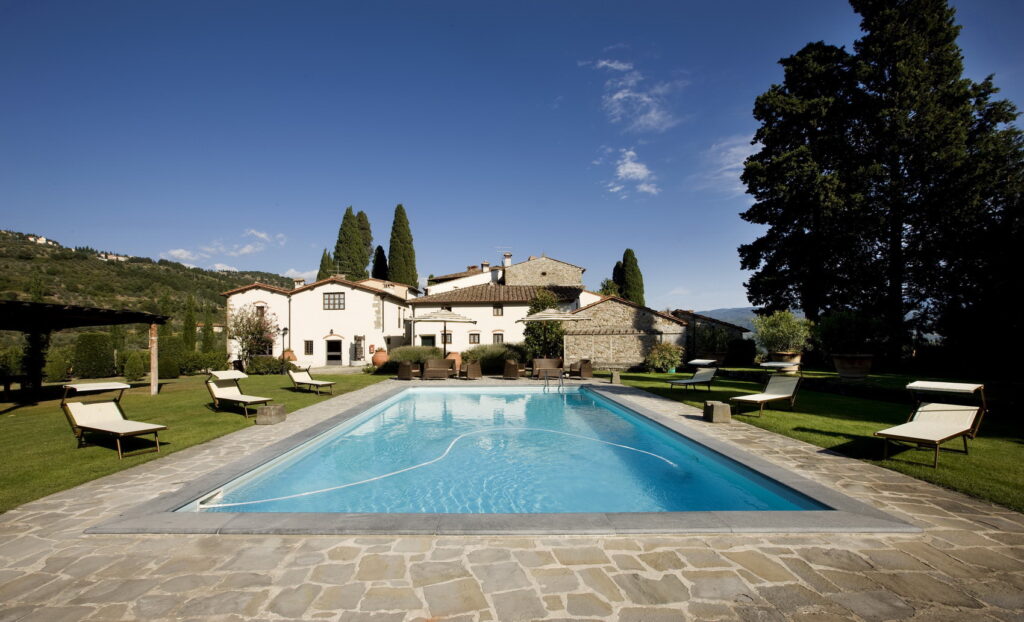 Antico complesso colonico situato sul crinale di un colle nel cuore del “Chianti Rufina” alle porte di Firenze, edificato intorno alle fondamenta dell’antico castello dei Cerchi, luogo caro e frequentato dal poeta Dante Alighieri e che ha citato anche in un verso della sua Divina Commedia. Il borgo, sapientemente ristrutturato, è composto da diversi corpi di fabbrica ed ha accesso tramite una strada privata che collega il colle alla strada provinciale. Sono presenti nel borgo 6 appartamenti autonomi, all’interno dei vari edifici si ritrovano diversi spazi a uso comune, una cucina e vari magazzini. All’esterno della struttura si trovano la piscina e i giardini finemente curati nel classico stile rustico fiorentino. Completano la tenuta 15 ettari di terreno, divisi come segue: circa 5 ettari e mezzo di uliveto, circa 8 ettari di bosco e circa 1 ettaro e mezzo di giardini e pascolo.
